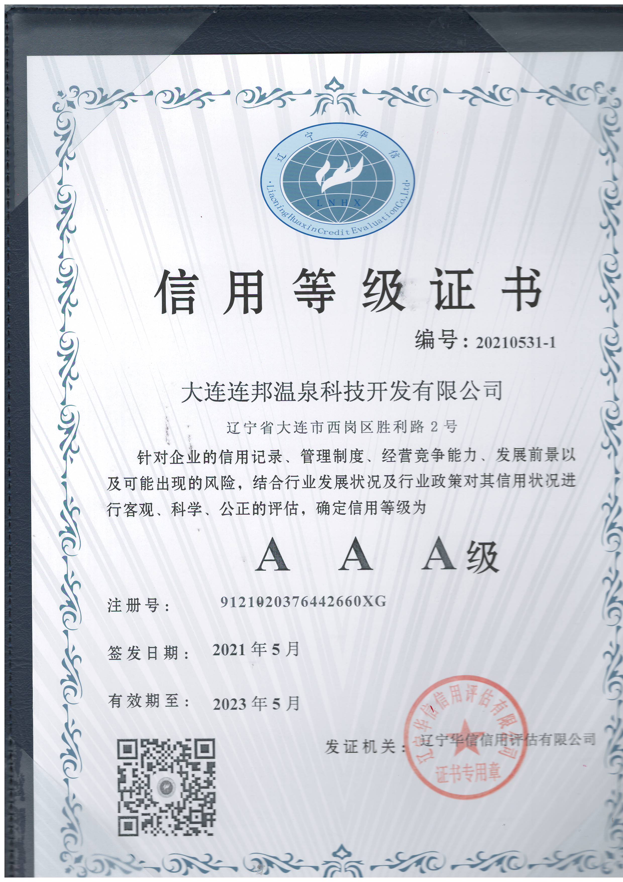 人工智能溫泉設備廠商連邦溫泉科技榮獲AAA級信用企業等級證書!這標志著連邦溫泉科技在企業信用建設上取得了突破性的成果,不僅增強了市場競爭力,也為人工智能溫泉行業樹立了標桿形象!